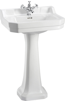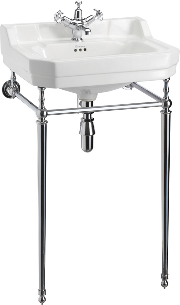 Edwardian tvättställ 56 cm med kromställning med ett hål för blandare. Edwardian är ett vackert tvättställ med upphöjd rygg.