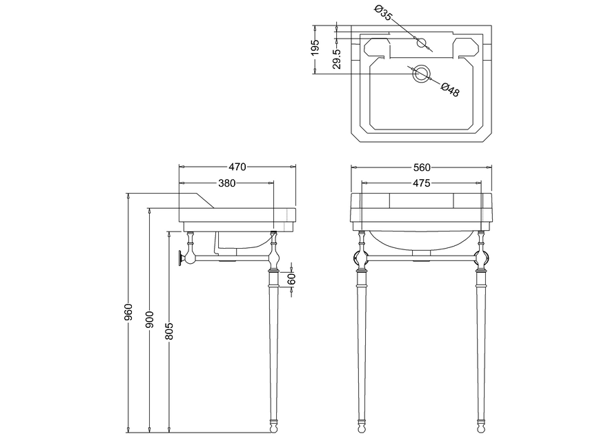 Kromställningen kan beställas med förlängningssats om man önskar ha tvättstället lite högre.