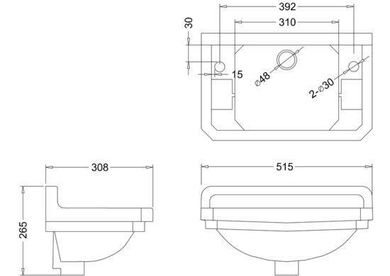 Burlington Edwardian JR tvättställ, ca 51 cm brett med ett eller två hål för blandare.
