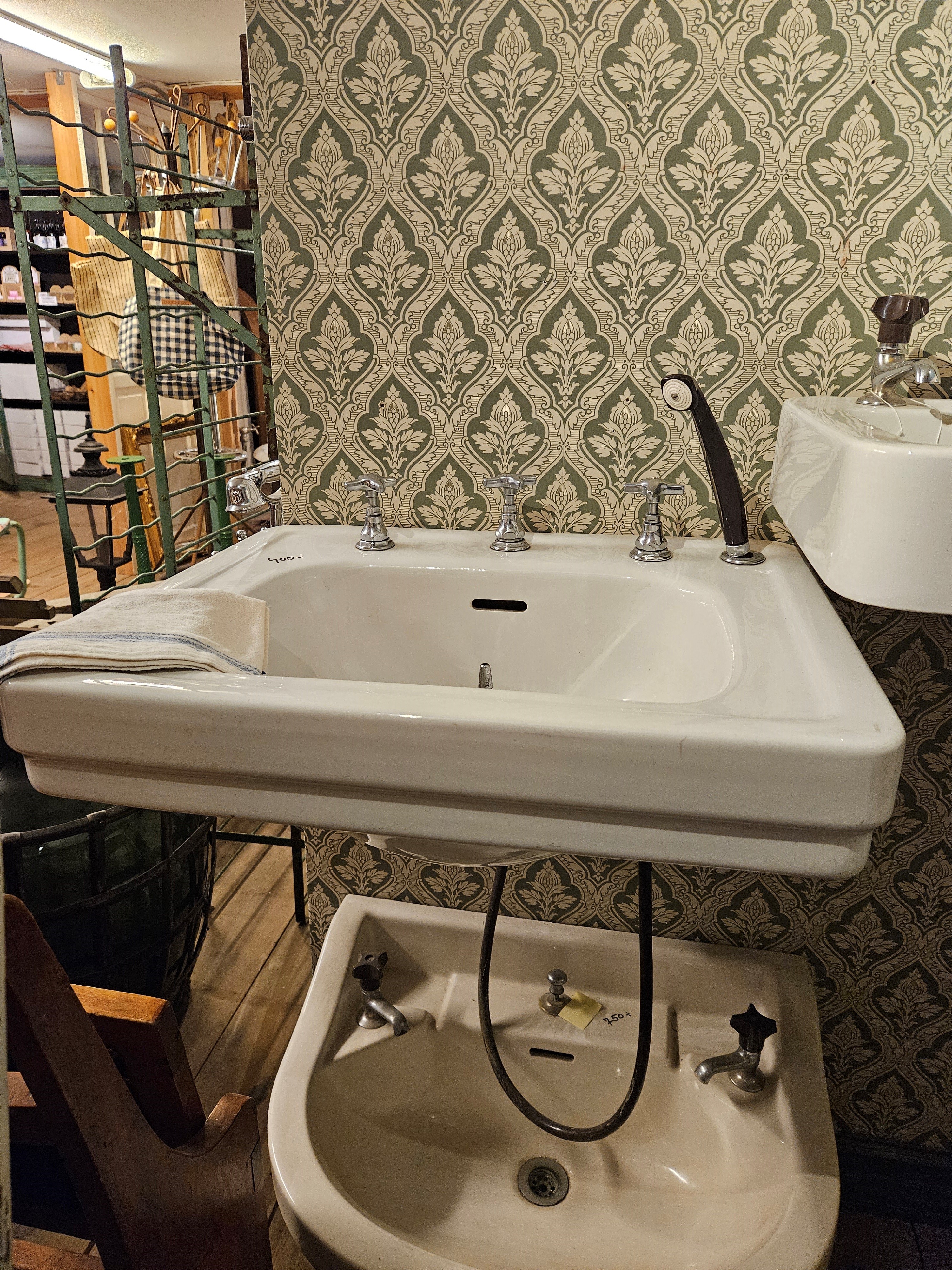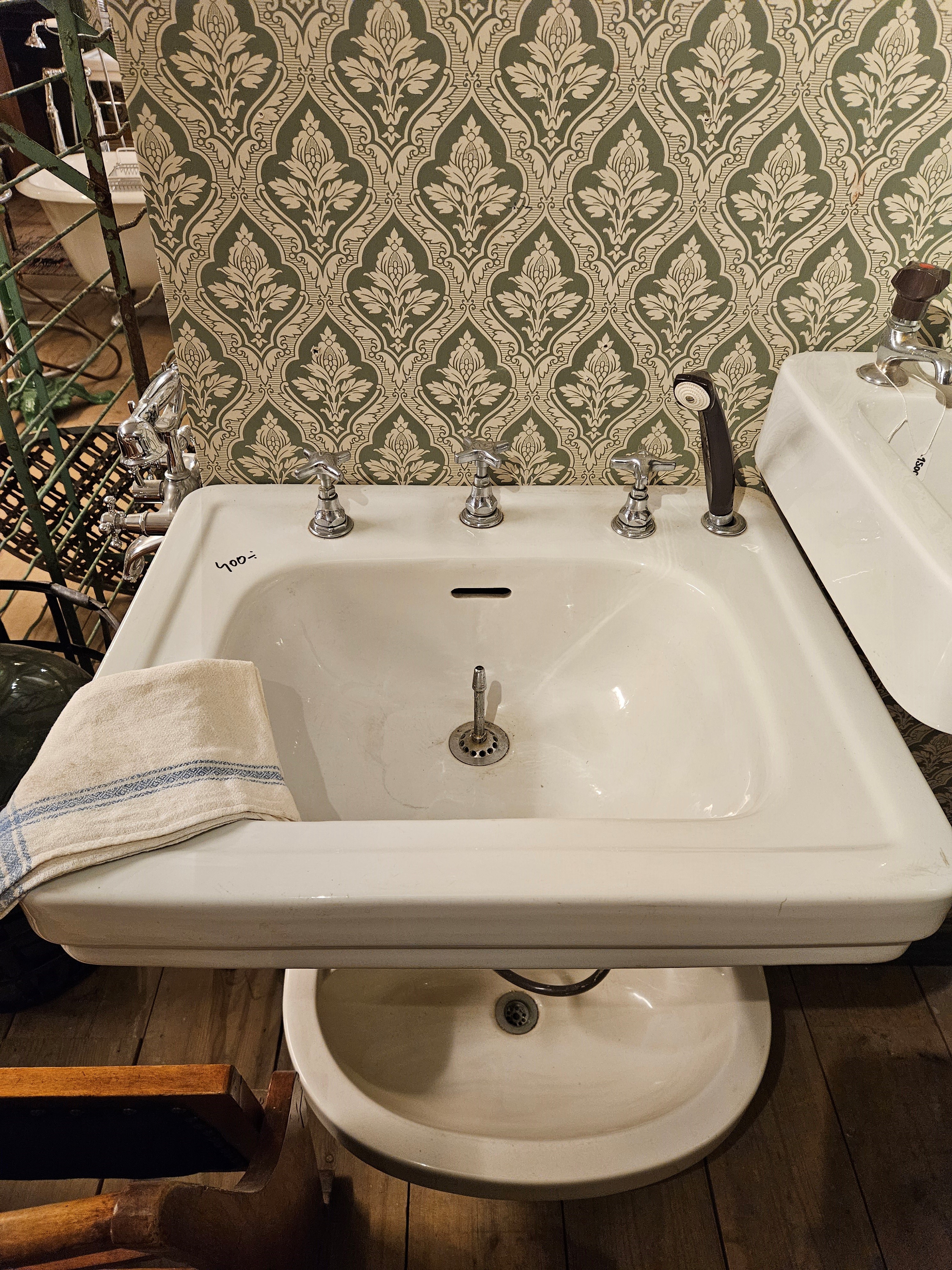 Artikelnr ov-20251201-04Vacker handfat med instalaret duschset. Lätt att fylla skurhinkar eller göra en lätt dusch.