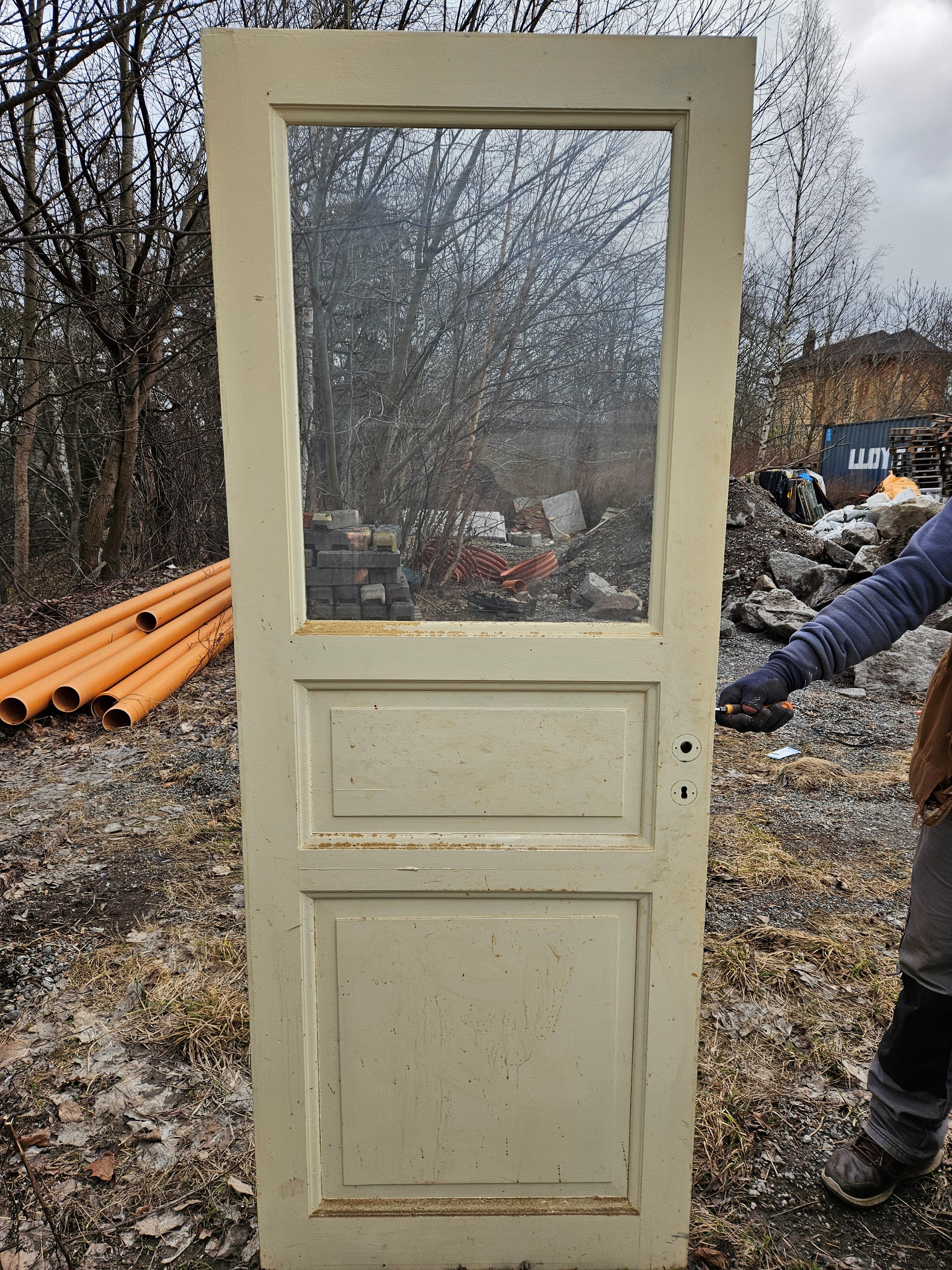 Enkeldörr med glas, 77x200, finns på Överjräva Byggnadsvård