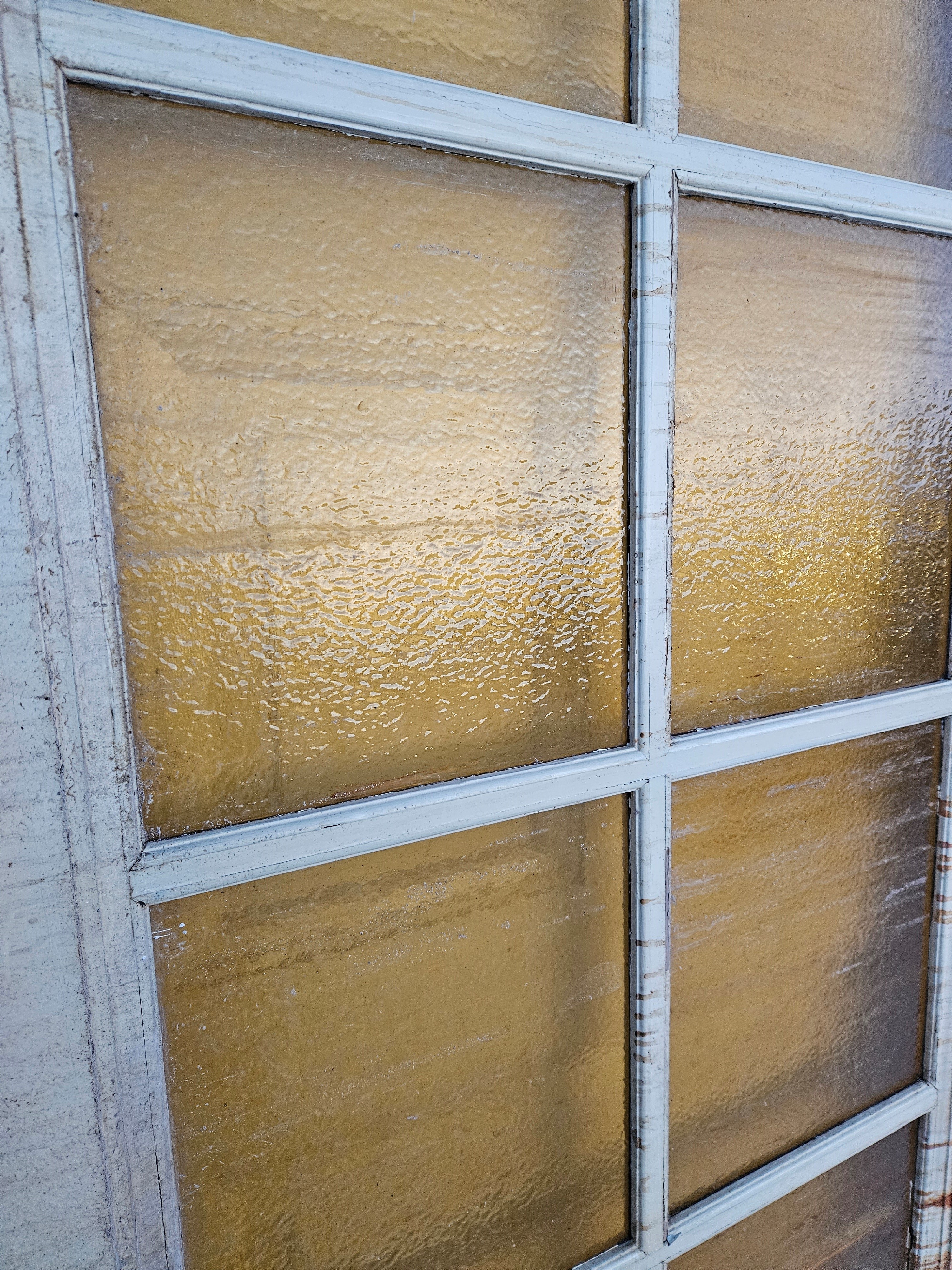 Artikelnr ov-20260126-07Enkeldörr med glas i orange ton och spröjs.
