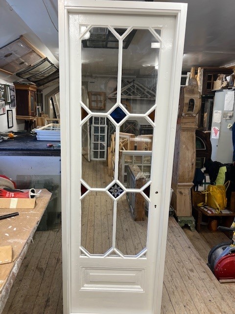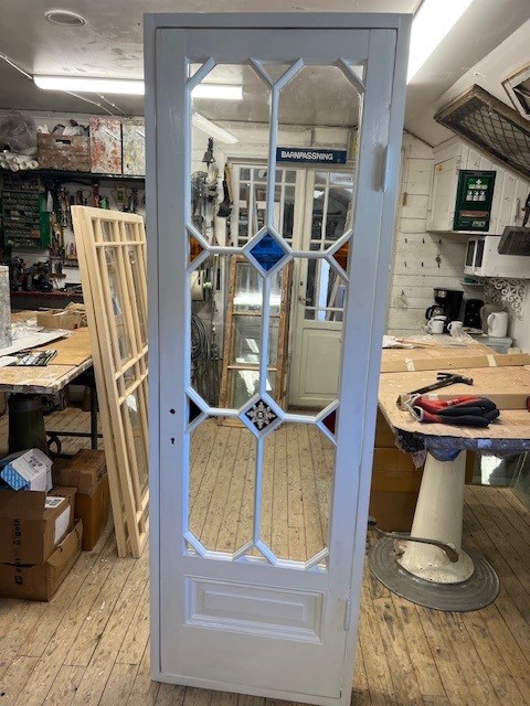 Artikelnr ov-20260414-06Enkeldörr med karm och gamlat glas.