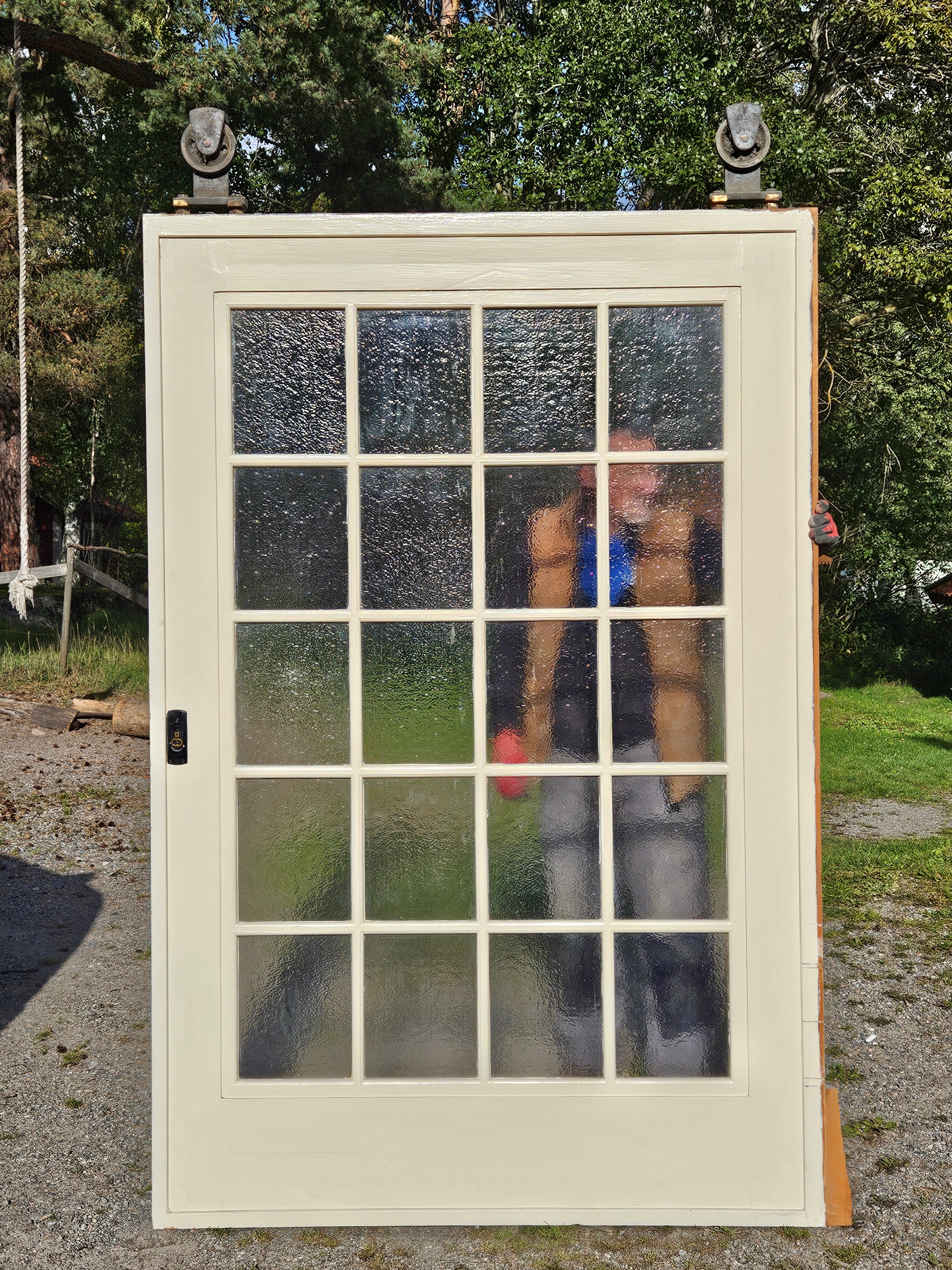 Skjuttdörr 141 x 213 cm, finns i Överjärva byggnadsvård