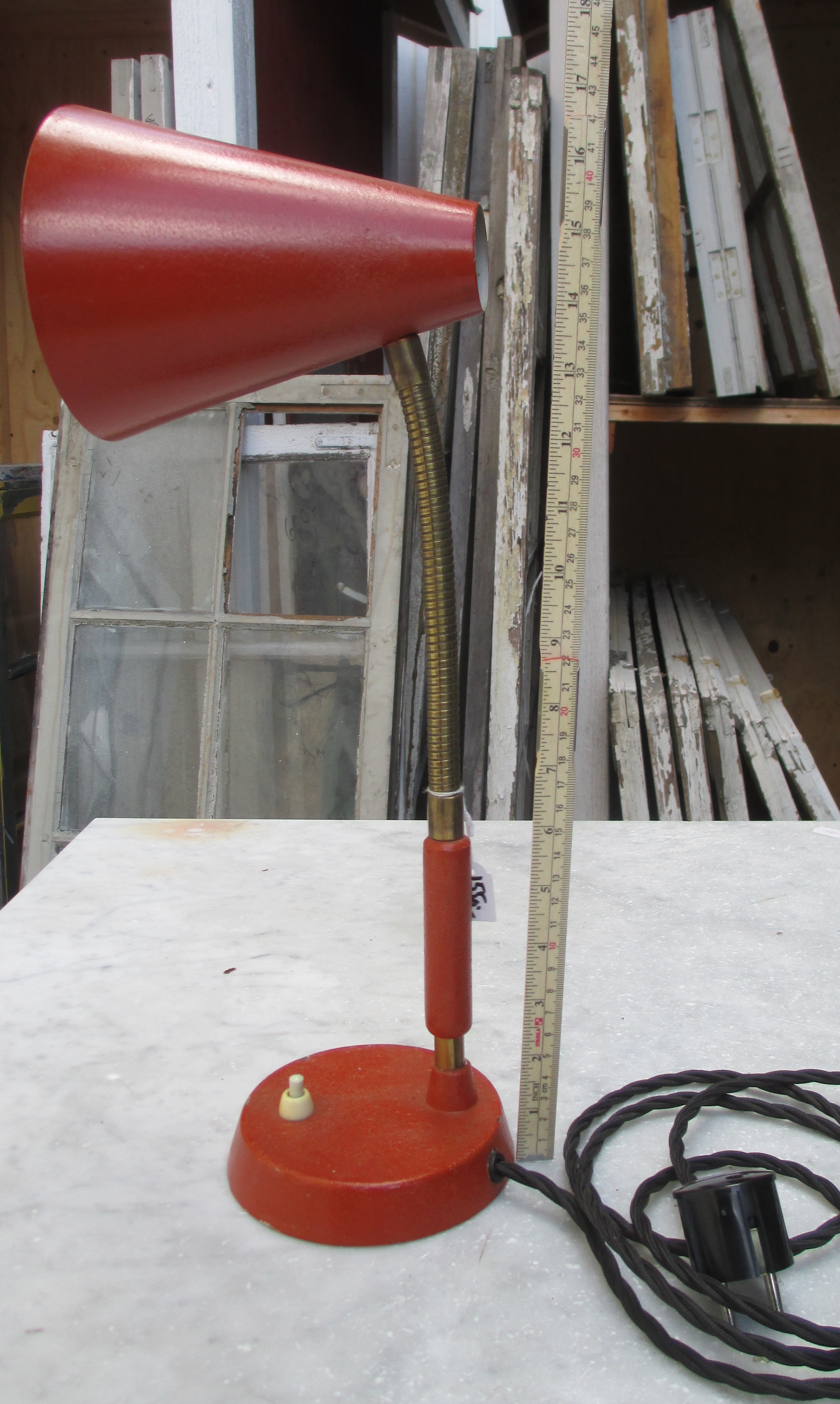 Rödbordslampa med böjbar arm. Finns endast en.