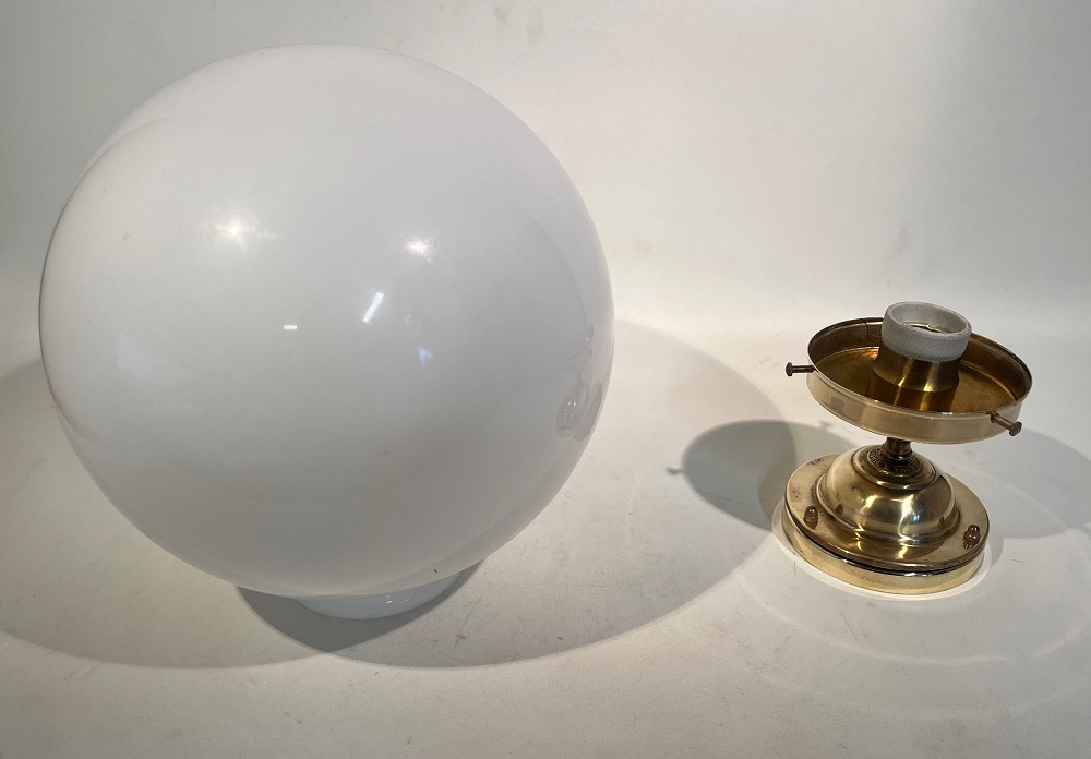 Demo ex, ett parti , finns fler, med opalvitt klot i 250 mm i diameter med flänsfattning.