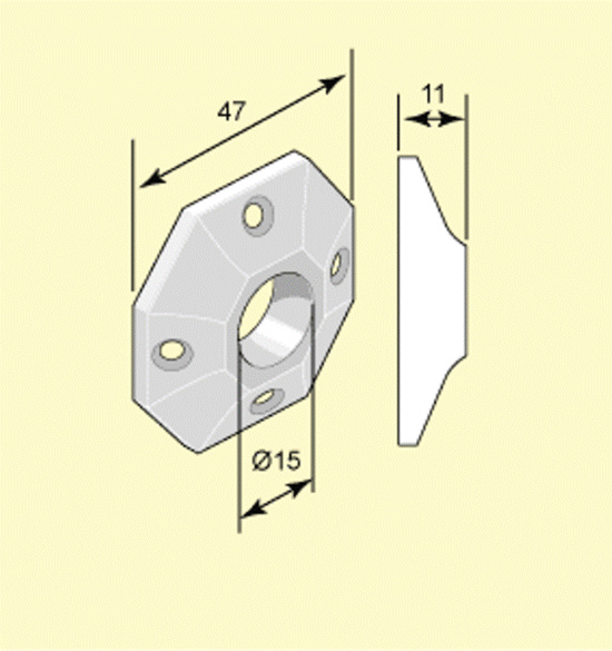Åttkantig tryckesbricka i blank mässing. Den kan också kallas tryckesrosett eller bara rosett. Pris per styck.