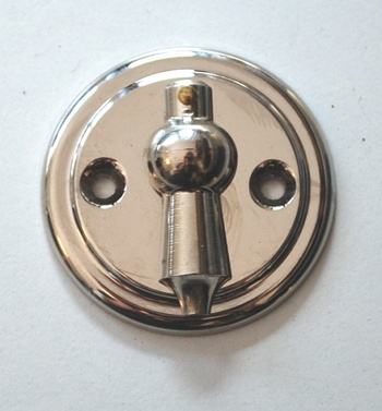 Artikelnr BDX05-NNyckelrosett i blank nickel med nyckelhål och kläpp. OBS! Pris per styck.