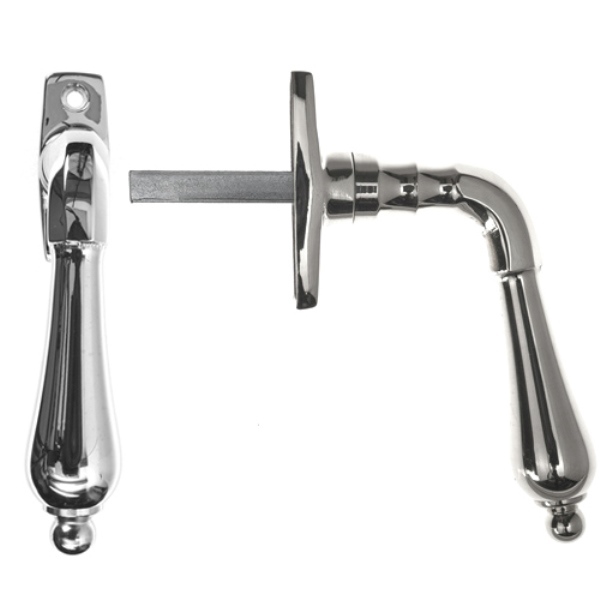 Artikelnr BF004-NSpanjoletthandtag i nickel som används på insidan av inåtgående fönster/fönsterdörrar eller utsidan av utåtgående fönsterdörrar. Passar alla infällda spanjoletter (även moderna) med fyrkantshål 8 mm.