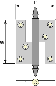 Gångjärn med ekollonknopp för ofalsade fönster och innerdörrar