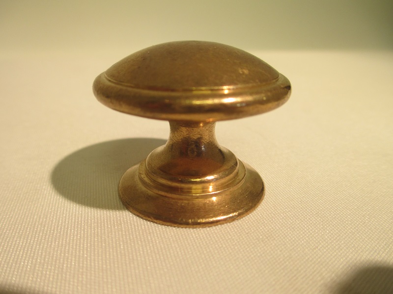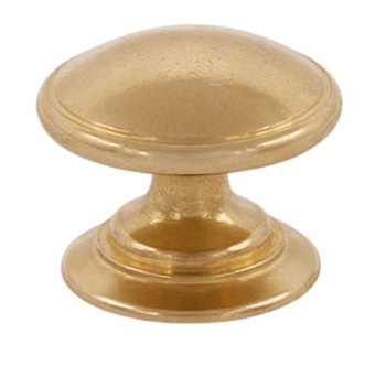 Rund knopp i obehandlad mässing. Knoppen fästs från insidan med 1 medföljande skruv.