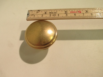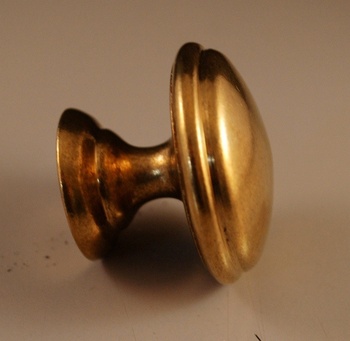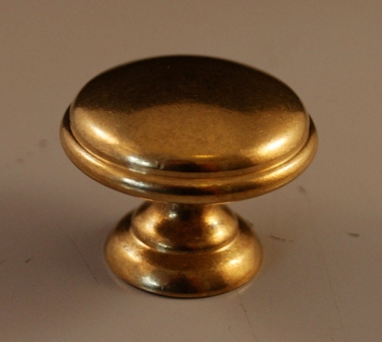 Rund knopp i obehandlad mässing. Knoppen fästs från insidan med 1 medföljande skruv.