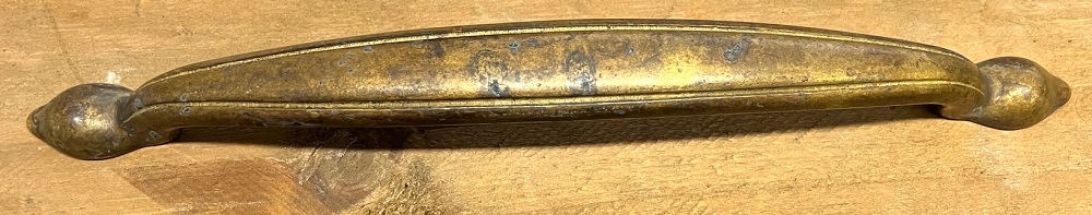 Lådhandtag/bygel i antik mässing. Handtaget fäst från insidan med 2 medföljande skruv.