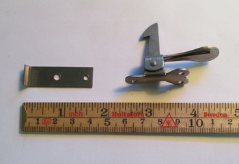 Gammal skåpklinka/snäppare, används på den passiva dörren i ett skåp med 2 dörrar utan mittpost.