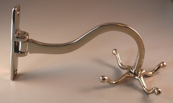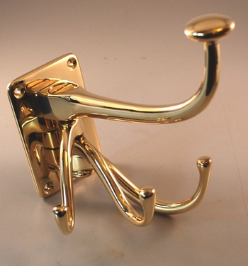 Klassiks fartygskrok i obehandlad mässing med en fast krok och tre svängbara.