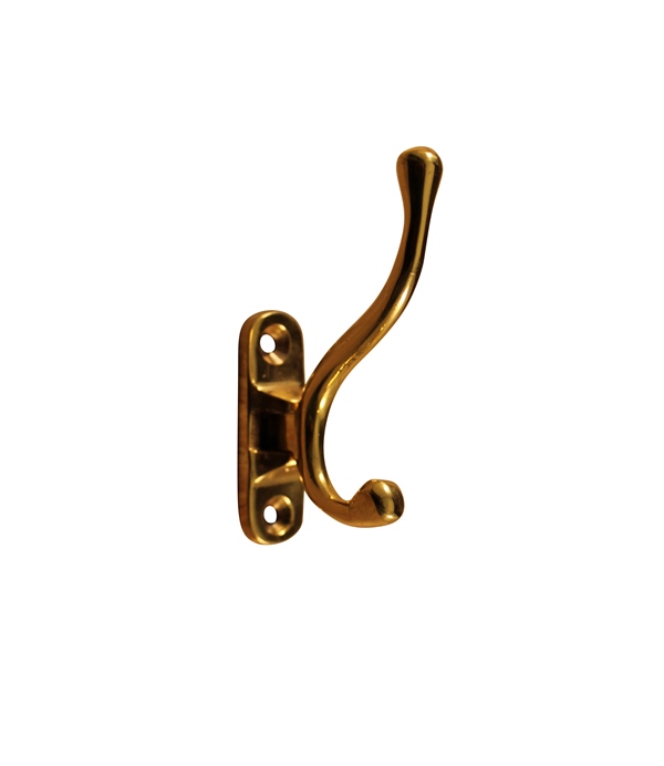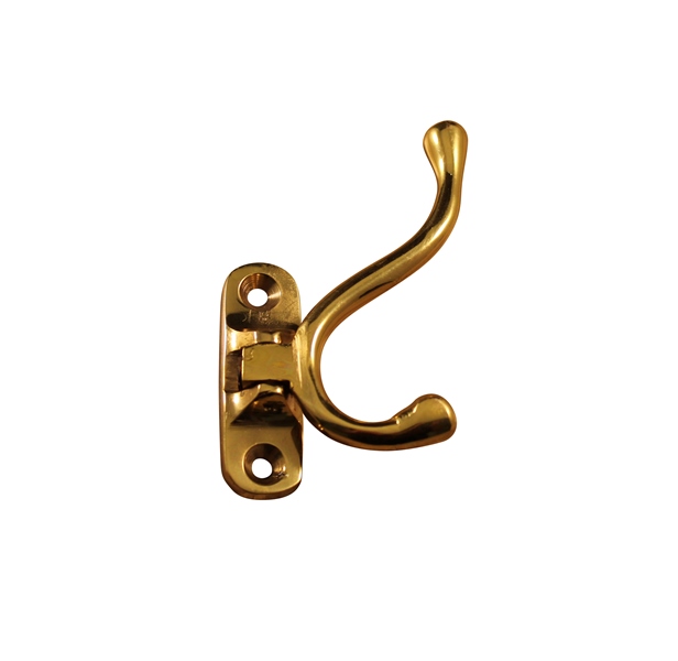 Klassisk krok i obehandlad mässing. Kroken går att vika undan så den ligger platt mot väggen. Kroken är uppgjuten efter en gammal modell.
