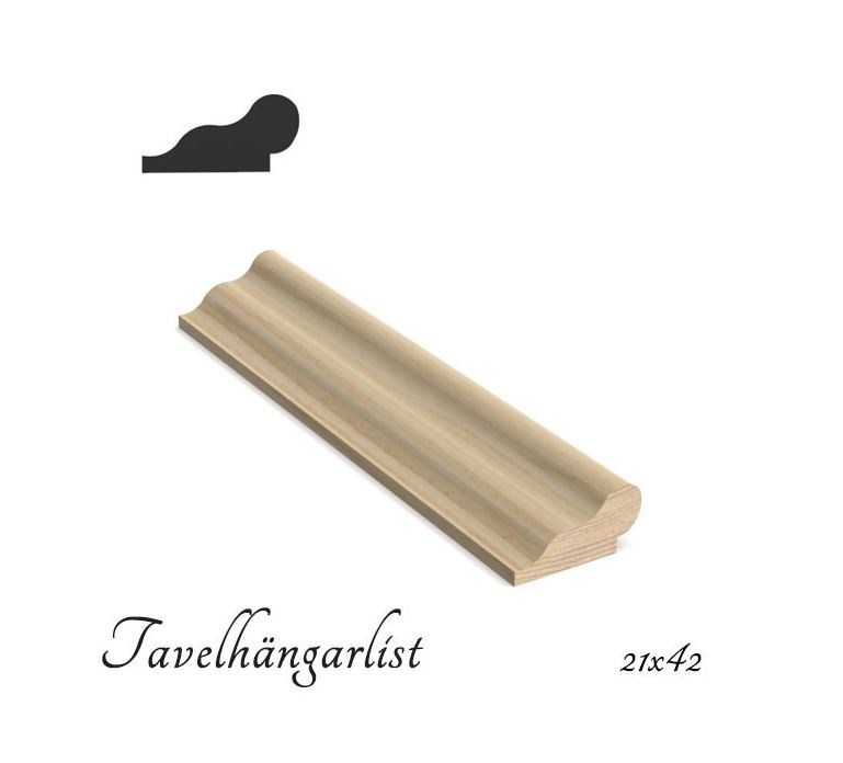 En list som är framtagen på en gammal förlaga och lämpar sig extra bra i rum där man inte vill göra hål i väggarna men ändå ha tavlor eller andra väggsmycken. Listens överkant lämpar sig extra bra för att hänga en krok på. Den här listen är även populär som dekorlist.