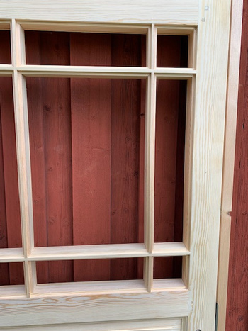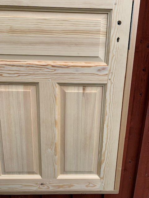Dörren är isolerad och tillverkad i kvistfri, svensk kärnfuru.