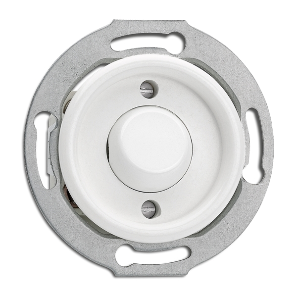 Artikelnr ED103-FFVippbrytare i vit bakelit, fjädrande komplett med fyrkantig ram (vit duroplast)