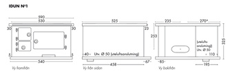Avstånd överkant häll till centrum rökrör: 253 mm