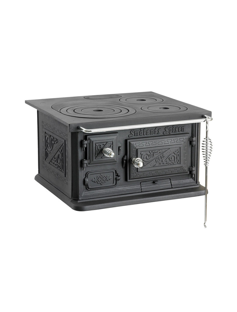 Artikelnr NS06-BSmålandsspisen 28 är Josef Davidssons minsta kvalitetsspis tillverkad av extra tjockt gjutgods, och med rejäl eldstad men lite mindre ugn. Spisen passar bra i fritidshuset eller i det lilla köket. Ugnstak klätt med 15 mm täljstensskiva. Fylls ugnen med en täljstenssats håller den värmen en hel natt. Spisen levereras med spisringar. Mot en extra kostnad kan även planslipade kokplattor fås. Som extra tillbehör finns benställning som spisen kan monteras på ihop med en emaljerad golvplåt. Med spisen följer spiskrok, sotraka, asklåda, spissvärta, pannkitt, termometer samt en slät bakplåt. Vid anslutning baktill ingår även murstos och rökanslutning. Vid toppanslutning ingår en oval-rund stos.