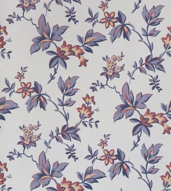 På 1920- och 1930-talen blev fantasiblommor moderna igen efter jugendtidens naturtrogna växtvärld. Denna tapet med sitt stora yttäckande blommönster i mjuka dämpade kulörer är typisk för tiden. Förlagan är funnen vid renoveringen av ett hus i Tierp i Uppland.