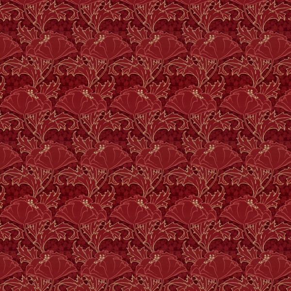 Göteborgs första stadsbibliotek, som kallades Bokpalatset eller Bokslottet i Haga, stod färdigt år 1900 och ritades av arkitekt Hans Hedlund. När byggnaden restaurerades under mitten av 1990-talet fann man fragment av en orginaltapet. Delar av mönstret saknades för att skapa en hel rapport men i ett arkiv i Berlin hittades ett snarlikt mönster som kunde användas som underlag. Mönstertypen, med stora vallmoblommor eller sjöväxter som näckrosor och liknande mot en bakgrund av stiliserade mindre blommor, var vanlig under slutet av 1800-talet och en bit in på 1900-talet. I det här mönstret återges vallmons blommor i horisontella rader. Detta sätt att betona rummets horisontaler blir allt vanligare i Sverige när jugendformerna går över mot 1920-talets ideal.