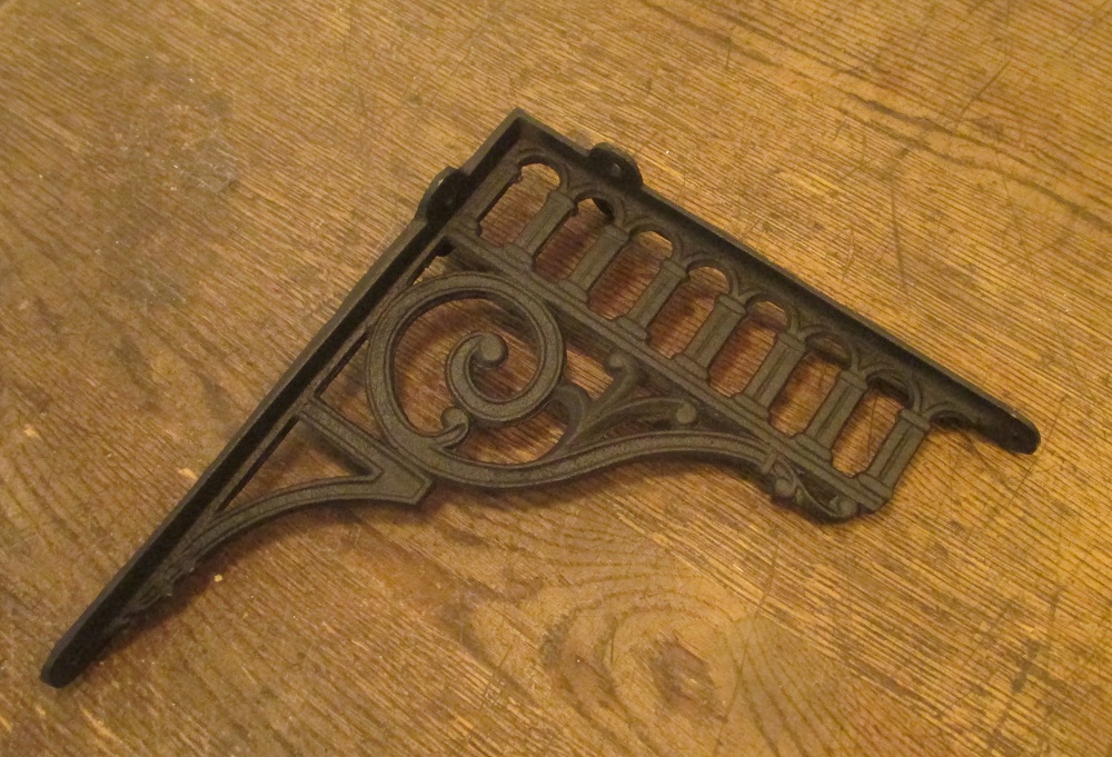 Klassisk vackert ornamenterad konsol i gjutjärn med kolonner.